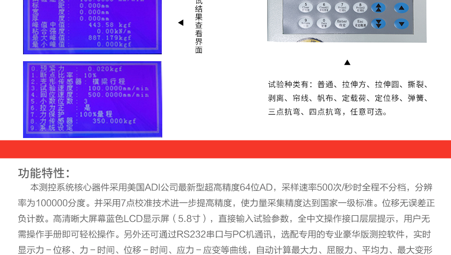 產品型號:JQ-8850 品牌:劍 喬 用途:本系列機廣泛用于各類薄膜、五金、橡膠料、紡織、建材、絕緣體、電線、電纜、端子等各類材料。測試其拉伸、撕裂、穿刺、剝離、抗壓、彎曲、抗剪切、定荷重、定位移、三點抗折